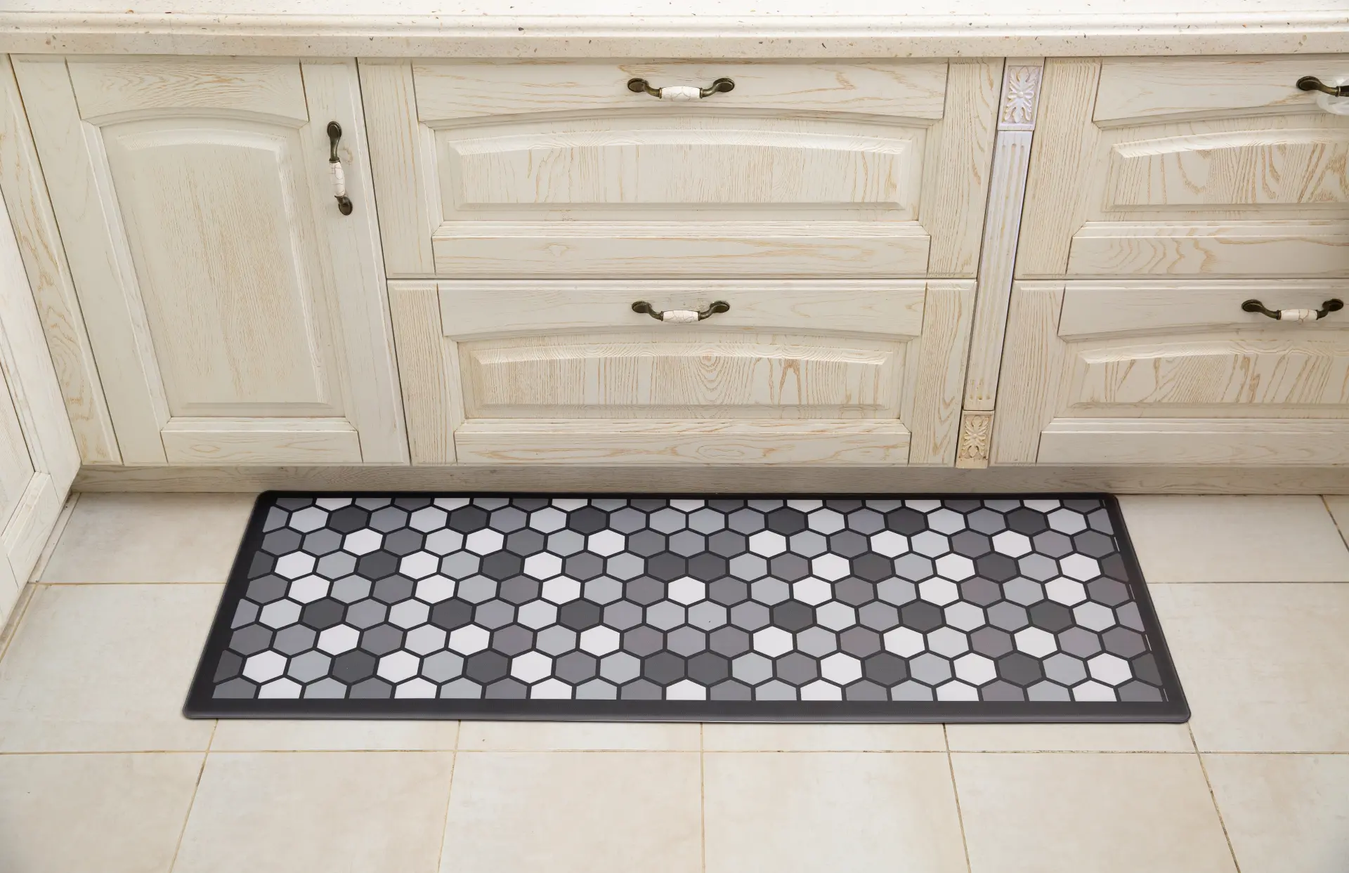 - NON-SLIP & STAIN RESISTANT TECHNOLOGY: Our anti-fatigue kitchen runner mat is oil and stain resistant for worry-free use. The high quality PVC material on the top has strong water repellent properties while the non-slid, PVC foam backing ensures that the rug stays safely in place without slipping back and forth, providing an extra layer of safety, even on slippery floor types.