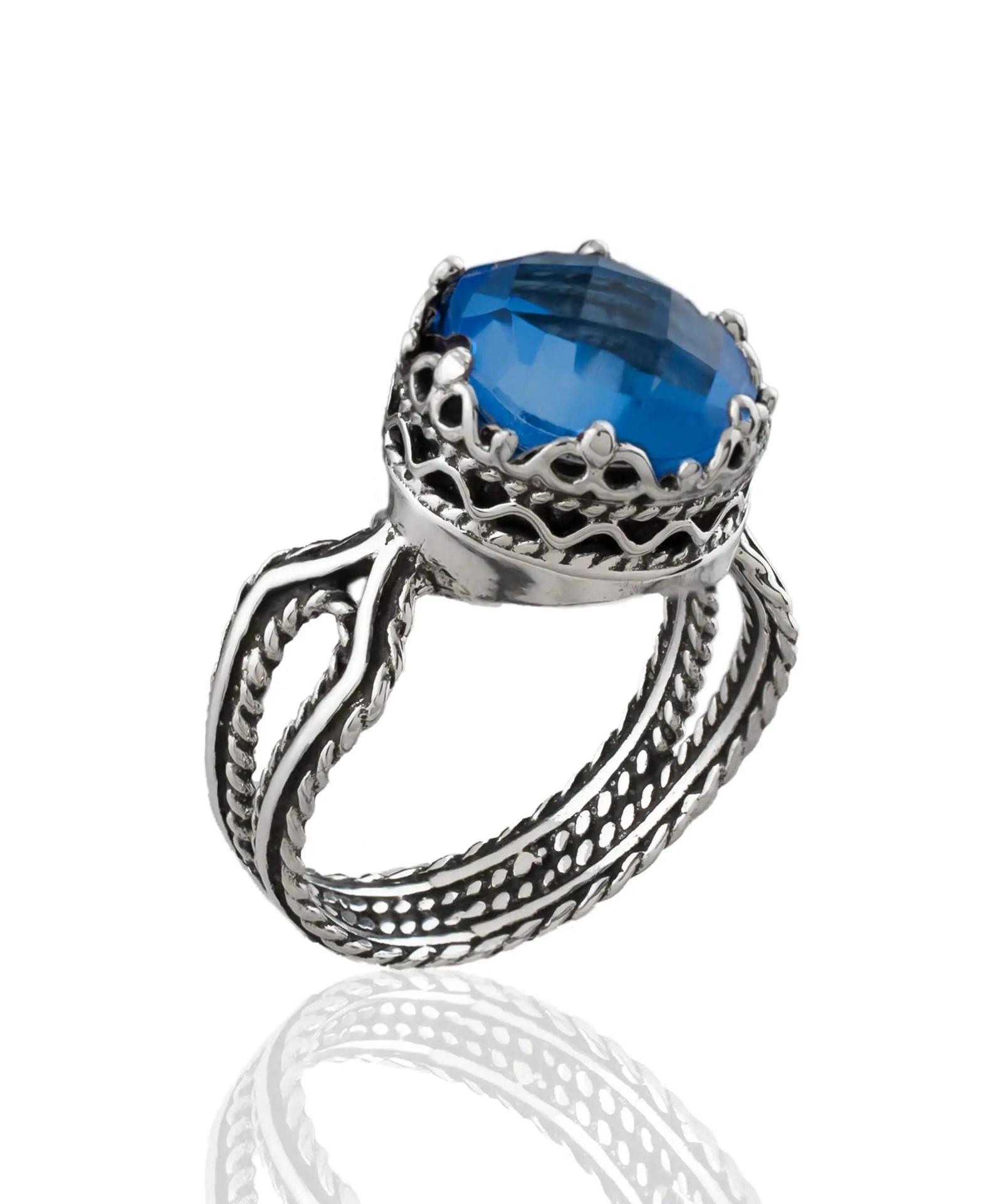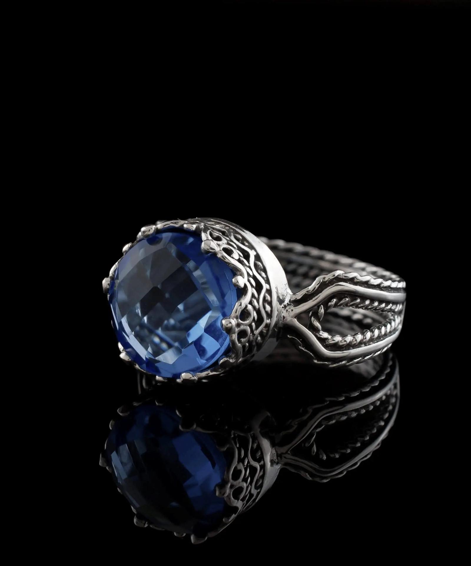 Looking for a stunning gift for your girlfriend, wife, mother, or sister? Look no further than this gorgeous silver filigree art women’s cocktail ring, featuring intricate details and a beautiful face-up design. With a double-side faceted checkerboard round-cut blue quartz gemstone measuring 10 mm and a face size of 0.47″ / 12.00 mm, this ring is sure to turn heads.
