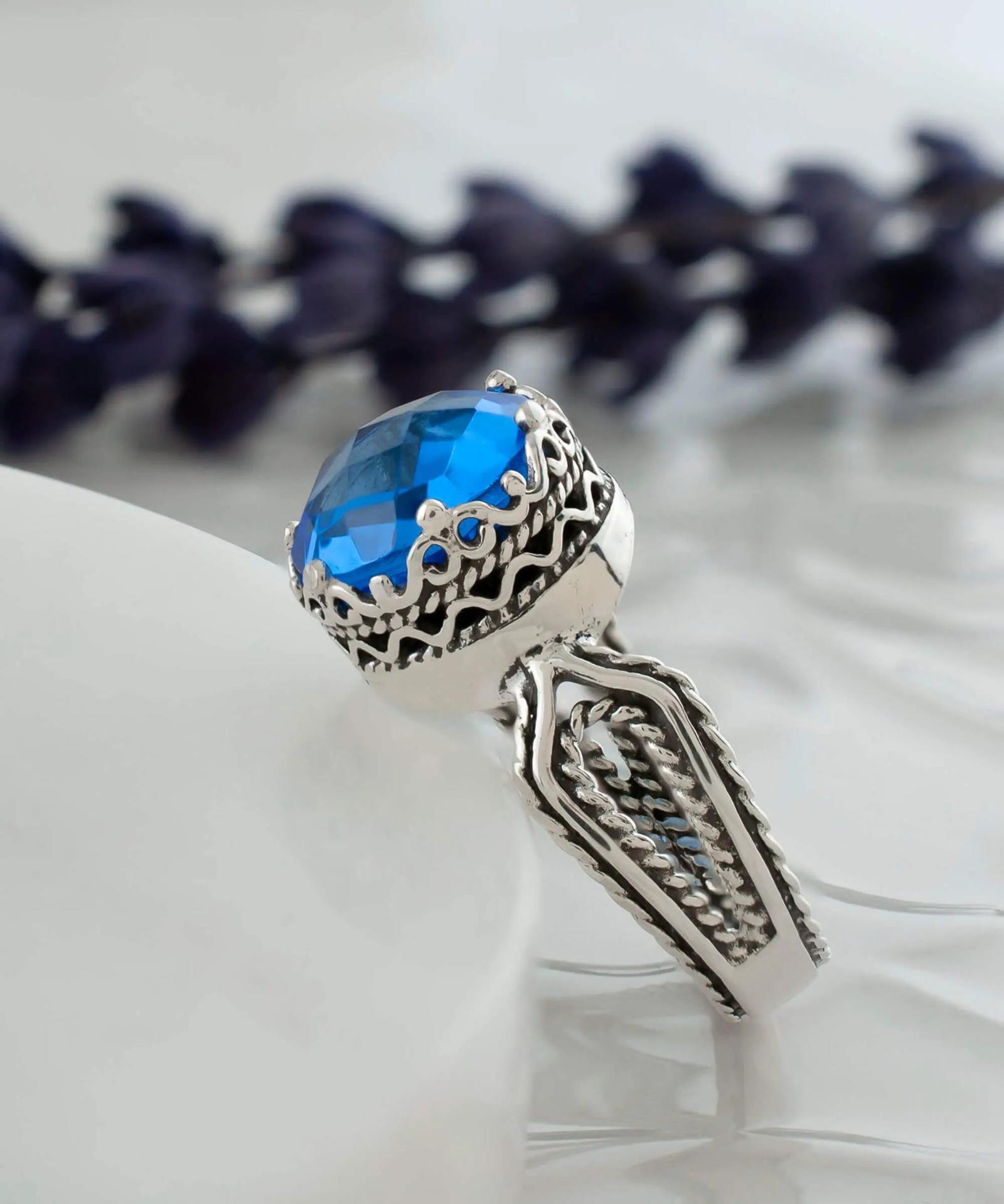 This stunning piece comes with a velvet pouch, silver polish cloth, and a luxurious gift box, making it an ideal choice for birthdays, Christmas, or any special occasion. Available in sizes 5 through 12.5 (including half sizes), this blue stone sterling silver minimalist ring will quickly become your favorite everyday accessory.