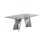 Give your dining room an unforgettable, luxurious look with this beautiful modern 78″L glass dining table. The thick tempered glass top is supported by a double pedestal base made of stainless steel with a silver finish. The unique, artistic design brings a distinctly glamorous, upscale look to any dining space.