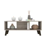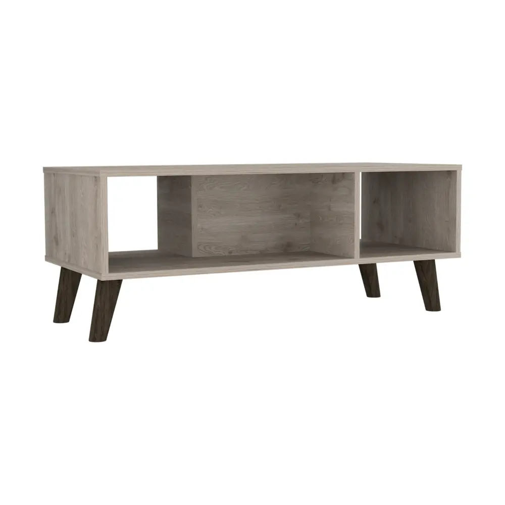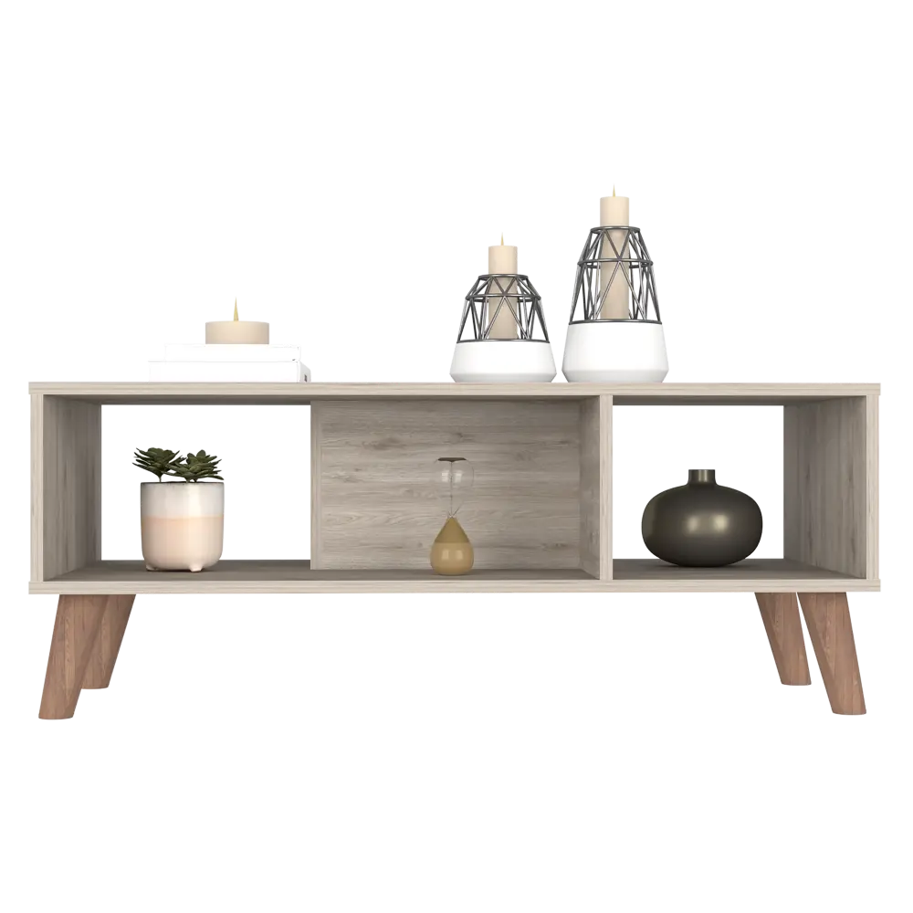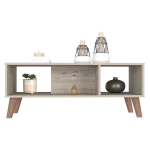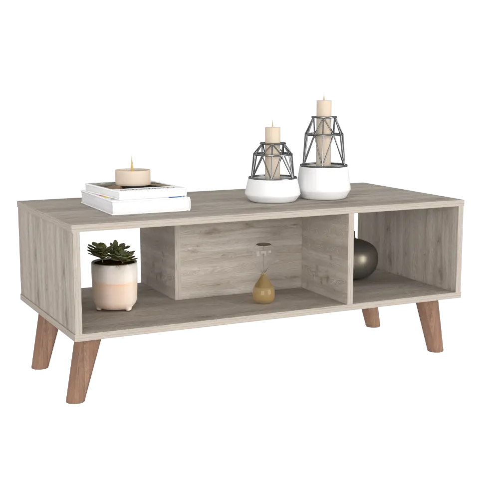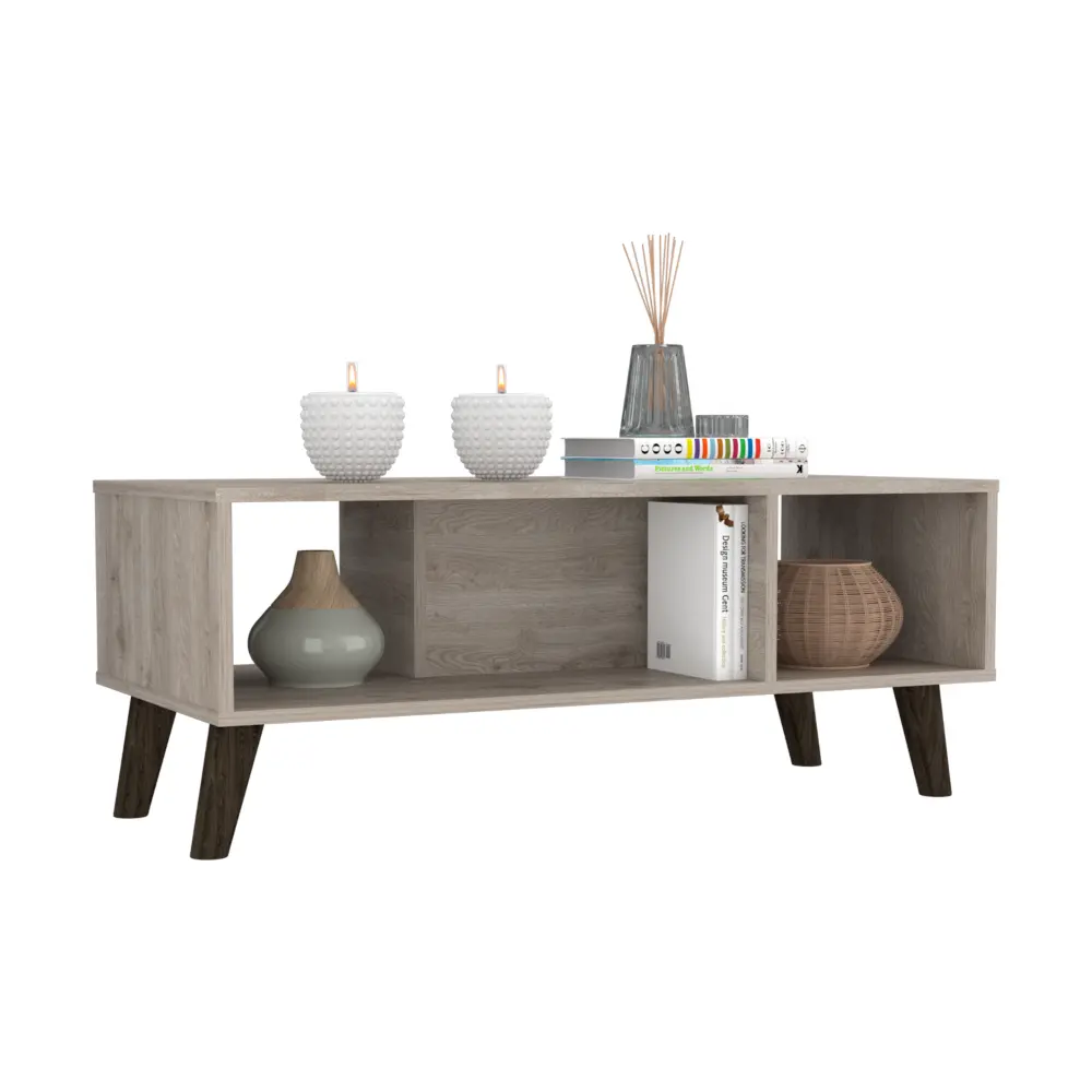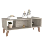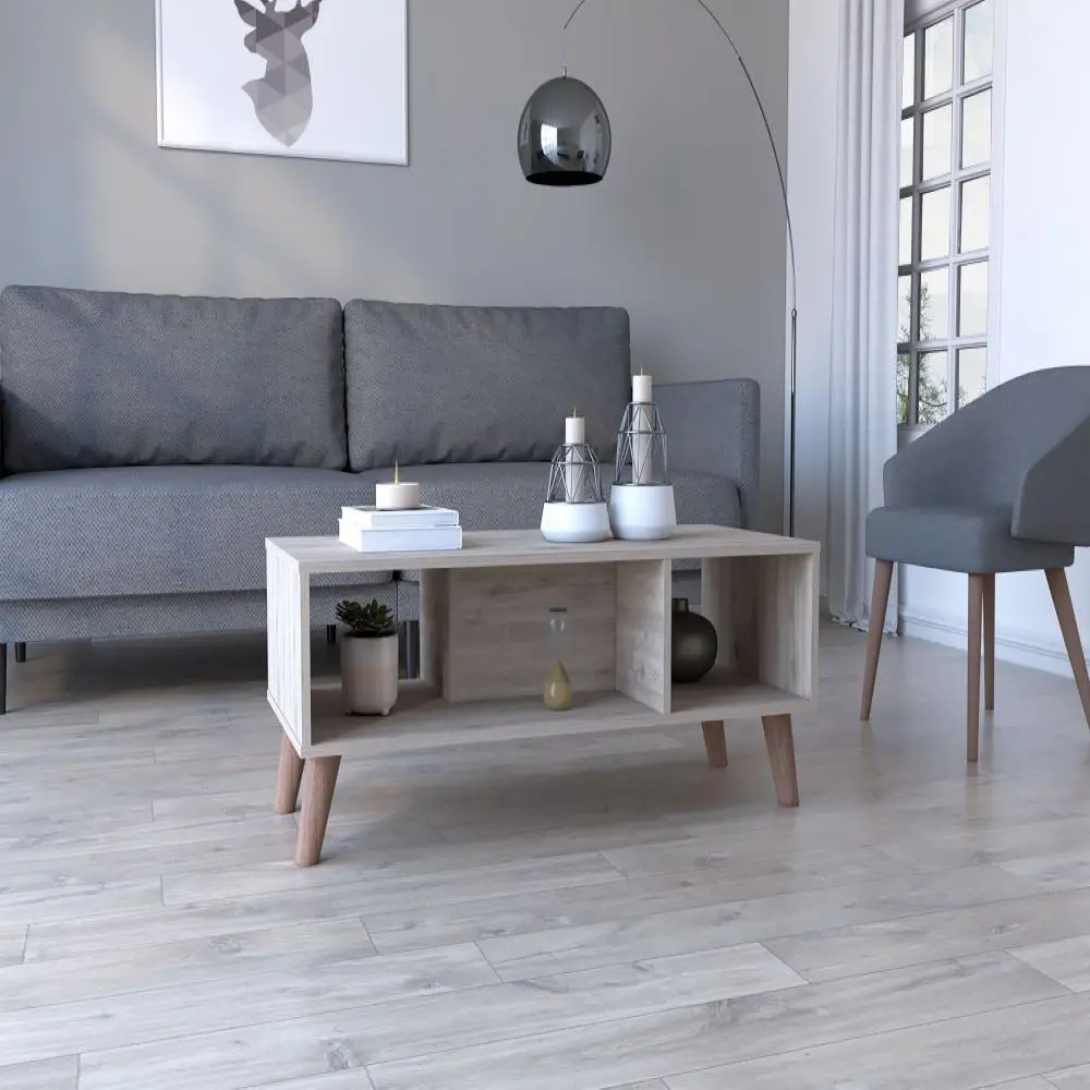 Plex Coffee Table is the perfect finishing touch to your living room collection. Its elegant design makes it a must-have piece for any home. The ample superior top (39,8”W X 18,5”D) and two shelves provide plenty of space for storage or display, while the four legs add a touch of sophistication. Whether you use it as a coffee table or an end table, the Plex Coffee Table is sure to make a statement in any room. Designed with elegant light grey manufactured wood finish.