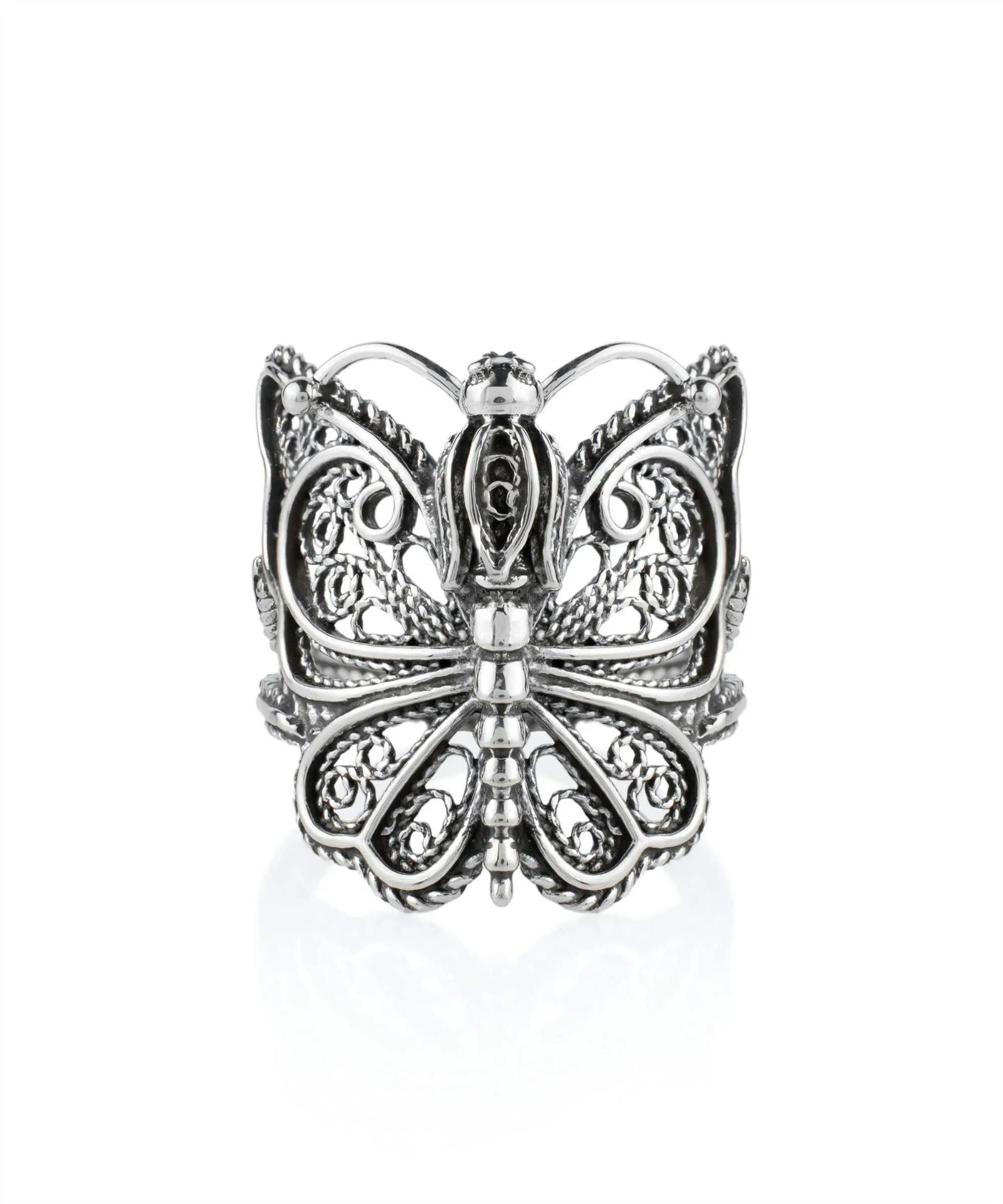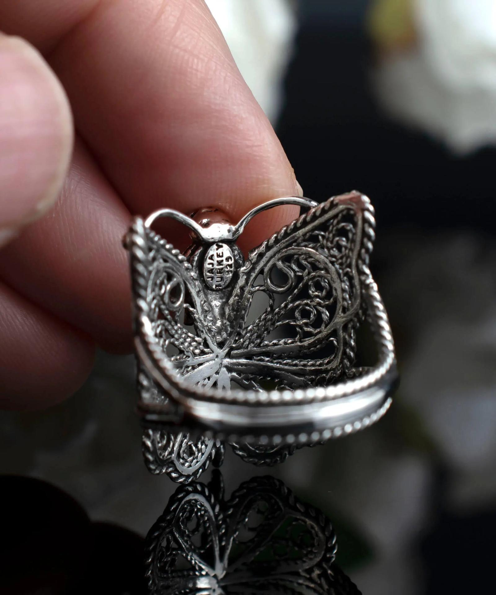 With its timeless beauty, intricate butterfly details, and sterling silver craftsmanship, this Handcrafted Filigree Art 925 Sterling Silver Women’s Butterfly Design Cocktail Statement Ring is a stunning addition to any jewelry collection. Buy now and experience the unparalleled beauty of handcrafted jewelry for yourself.