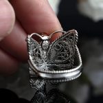 Indulge in the exquisite beauty of this Handcrafted Filigree Art 925 Sterling Silver Women’s Butterfly Design Cocktail Statement Ring. This masterpiece is a testament to precision and craftsmanship, featuring an intricate filigree butterfly design that is sure to captivate everyone’s eye.