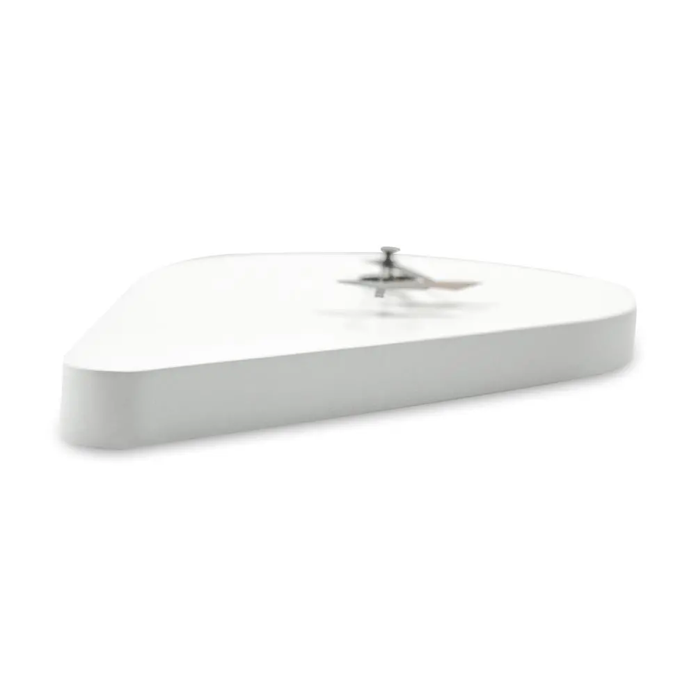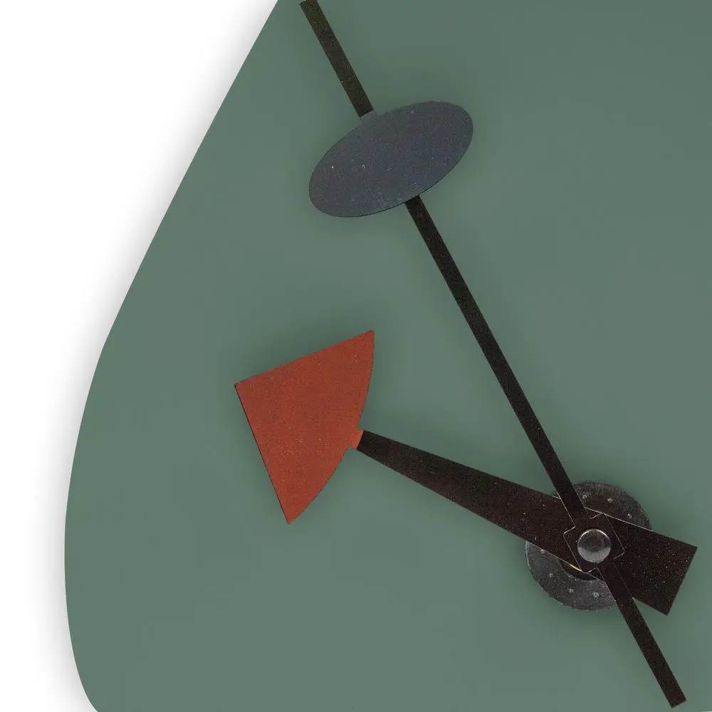 Clock is Silent Ticking. Mid-Century Design. Easy to read time. Quartz clock movement allowing for precise and maintenance-free measurements. Powered on 1 AA battery included. You can easily hang it on a wall by slotting the clock on a nail. Clock hands are made of aluminum material.