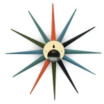 This beautiful Star Clock will make sure you Keep time in style. With this clock it will definitely stand out from other ordinary clocks placed in the room, Its colorful appearance has a stunning and elegant design, making it a perfect addition to your wall space. It also features twelve pointed metal spokes beautifully painted with rich and vibrant colors inspired from the period. The Starburst look brings a retro look to any home or business space.