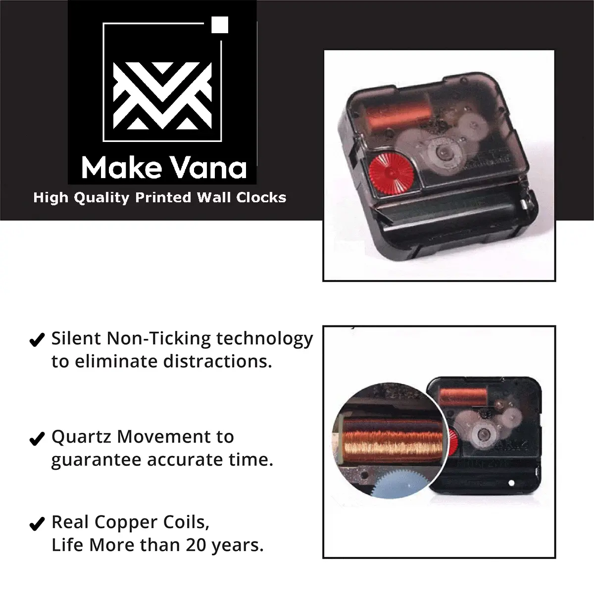 Perfect Wall Clock . High-quality printed clock made with real copper coils for long life. Super-quality Quartz Sweep Movement guarantees accurate time and an absolutely silent environment.